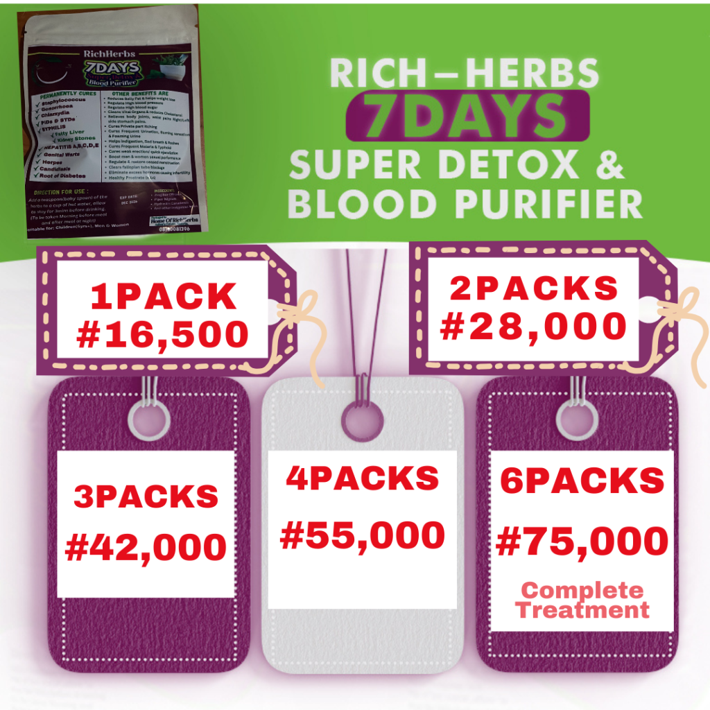 BENEFITS OF USING RICH-HERBS 7DAYS DETOX AND BLOOD PURIFIER