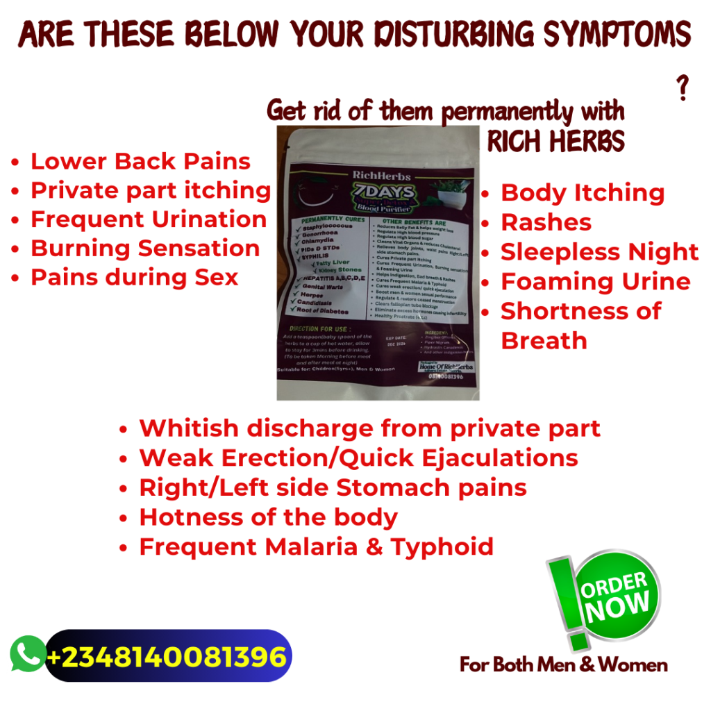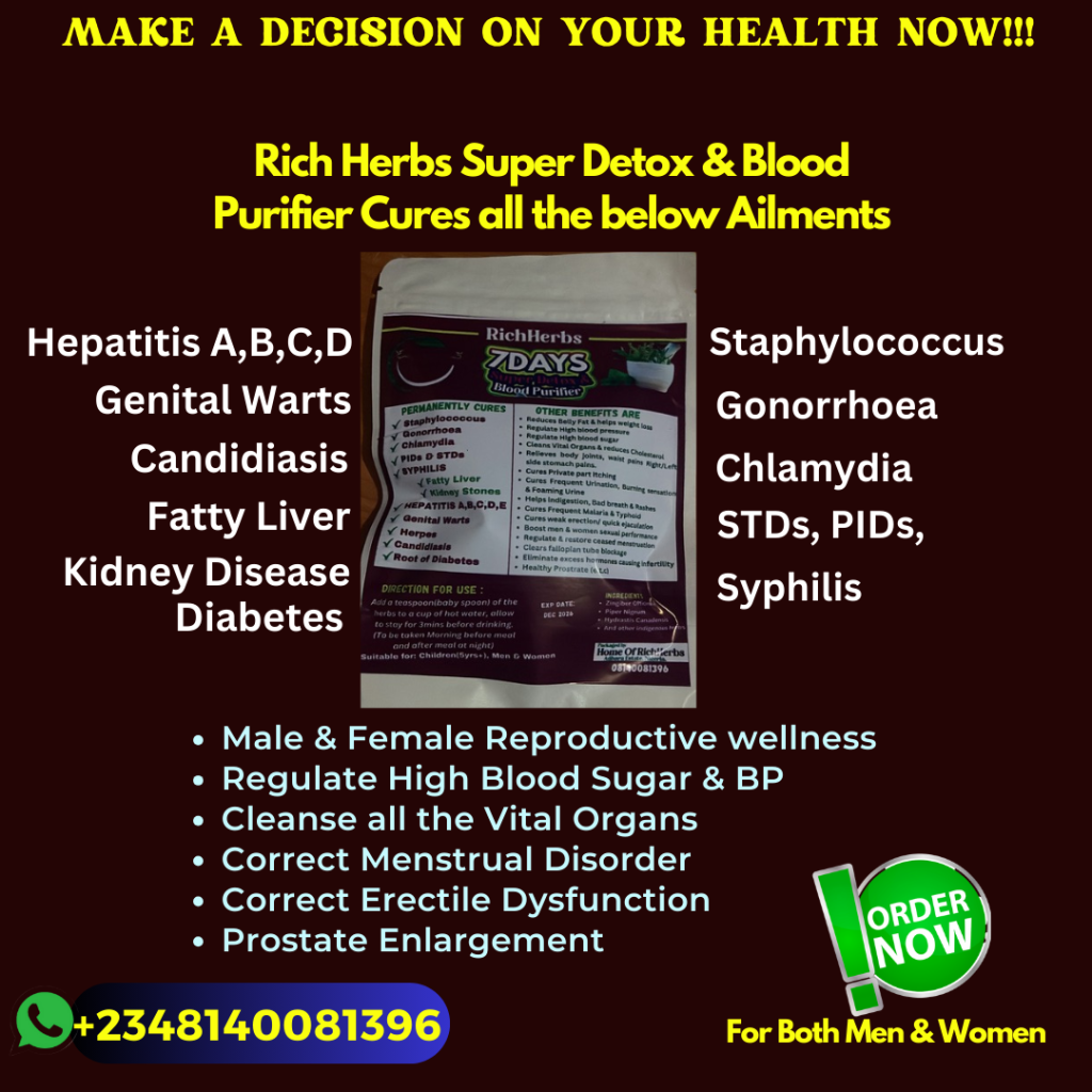 (Click here to Order for Rich Herbs Super detox & Blood Purifier and get rid of those INFECTIONS