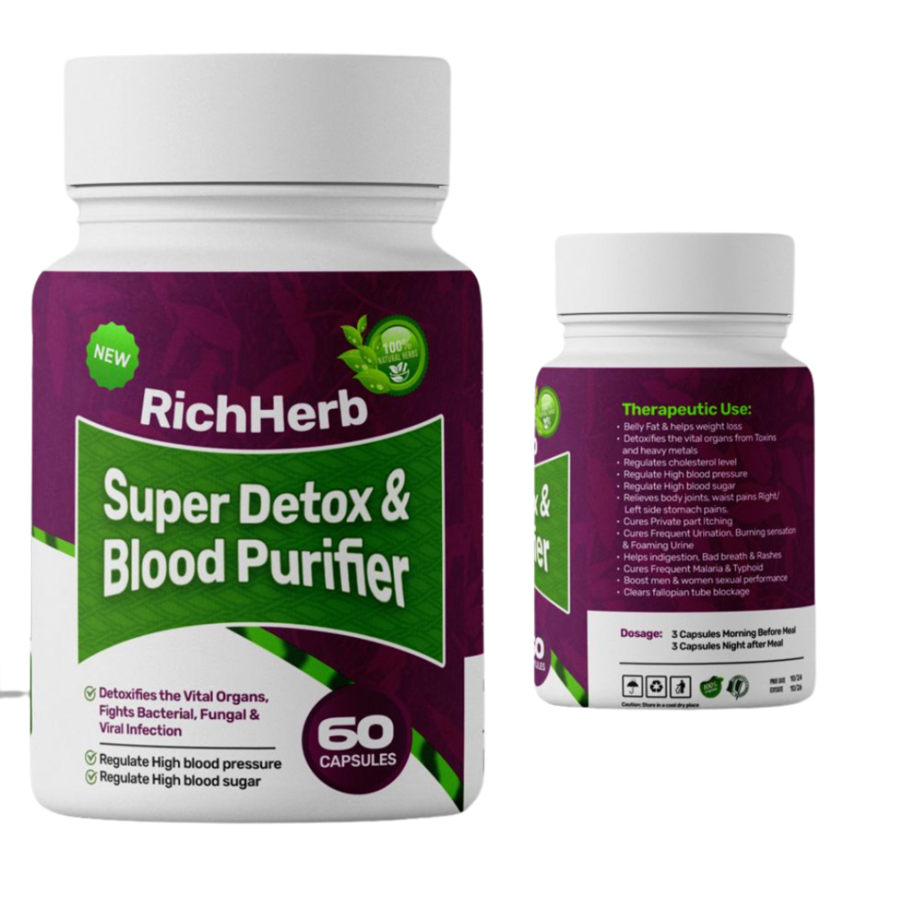 Rich Herbs Super Detox & Blood purifier is trusted by thousands of Nigerians for faster healing. It is a natural herbal formula made from a powerful mix of locally sourced and international botanicals, blended in to CAPSULES and TEA