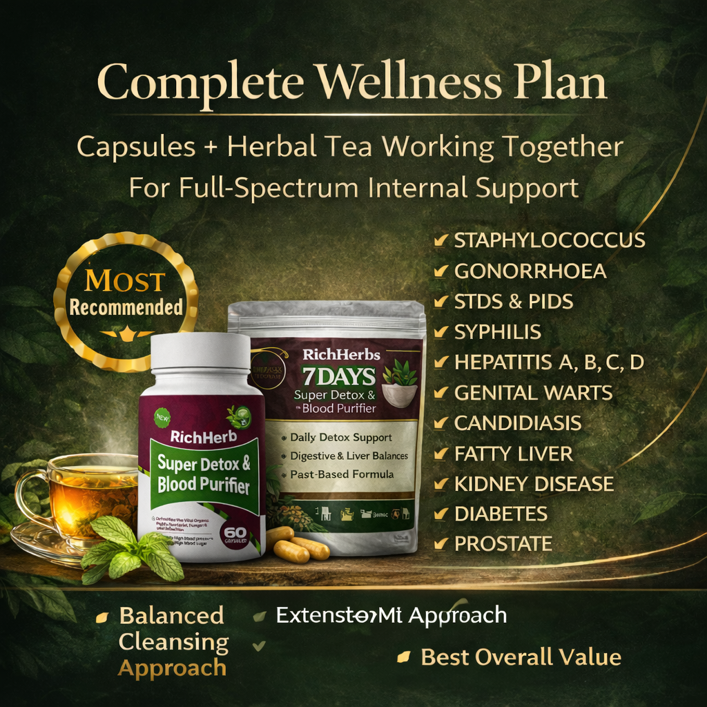 Whether you prefer the convenience of capsules, the tradition of herbal tea, or a complete combined approach, Rich Herbs Super Detox & Blood Purifier offers flexible options designed to support your lifestyle.